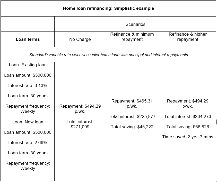 *This is a simplistic example—it doesn’t, for example, take into account the effect of potential interest rate movements over time or any refinancing costs that may apply, such as discharge fees, application fees or legal fees.